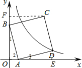 而顶点D落在双曲线y=$\frac{y}{x}$,
