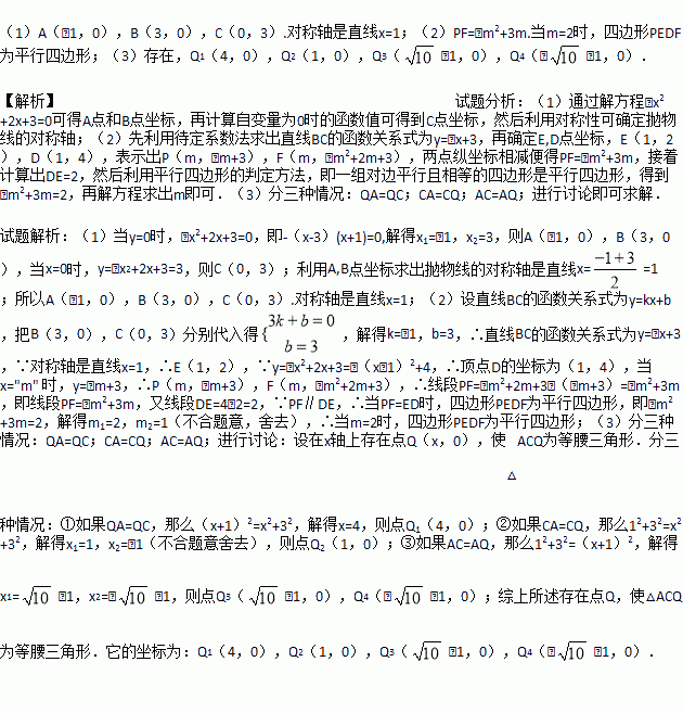 (3)如图3,连接AC,在x轴上是否存在点Q,使△ACQ为等腰三角形,若存在,请求出点Q的坐标,若不存在,请说明理由.