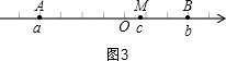 则分三种情况:①当点M在点B的右侧时,如图2,BM-AM=c-b-c+a=a-b=-4-3=-7,![]()
