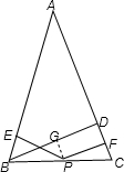分析:根据已知,过P作PG⊥BD于G,可得矩形PGDF,所以PF=GD①,再由矩形PGDF得PG∥AC,又由AB=AC得∠ABC=∠C,所以∠BPG=∠ABC,再∵∠PEB=∠BGP=90°,BP=PB,则△BPE≌△PBG,所以得