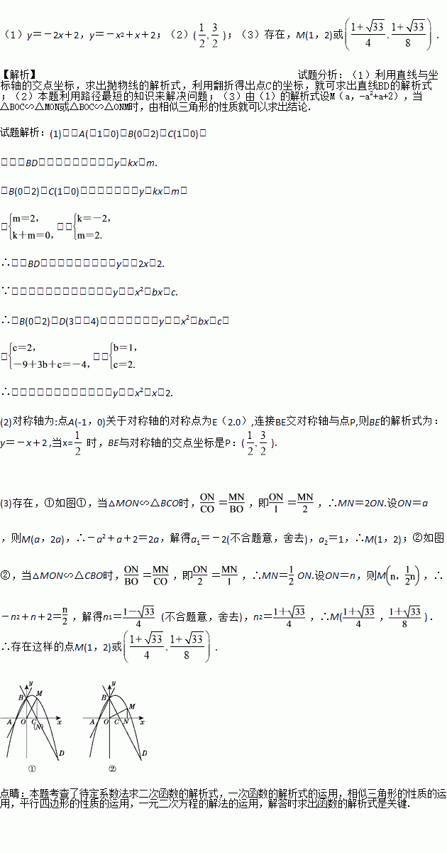 (3)在第一象限内的抛物线上,是否存在一点M,作MN垂直于x轴,垂足为点N,使得以M,O,N为顶点的三角形与△BOC相似?若存在,求出点M的坐标;若不存在,请说明理由.