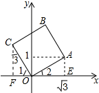分析 作AE⊥x轴于E,CF⊥x轴于F,证明△OCF≌△AOE,得出对应边相等OF=AE=1,CF=OE=$\sqrt{3}$,即可求出结果.