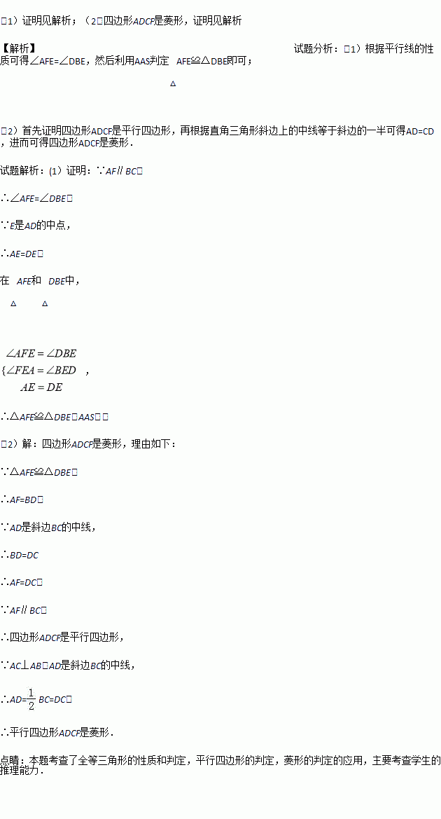 (2)若AB⊥AC,试判断四边形ADCF是不是菱形?若是,证明你的结论;若不是,请说明理由.