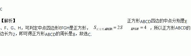如图,正方形ABCD四边的中点分别是E、F、G、H,若四边形EFGH的面积是2,则正方形ABCD的周长是( )