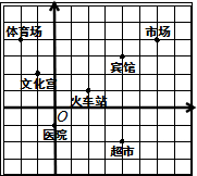 (2)体育场(-2,4),市场(6,4),超市(4,-2),宾馆(4,3).