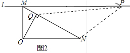 (2)如图2,以点N为圆心,ON为半径作弧,交直线l于点P,则点P为符合题意的点.![]()