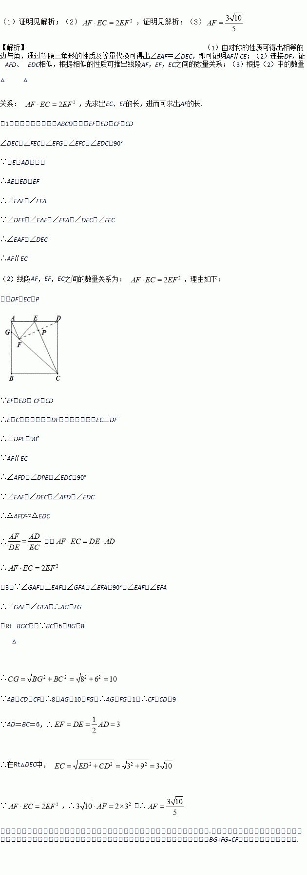 (2)探究线段AF,EF,EC之间的数量关系,并说明理由;