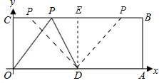 分析:由于D是OA的中点,根据点A的坐标可知OD=2,因此若△ODP是腰长为2的等腰三角形,要分两种情况: