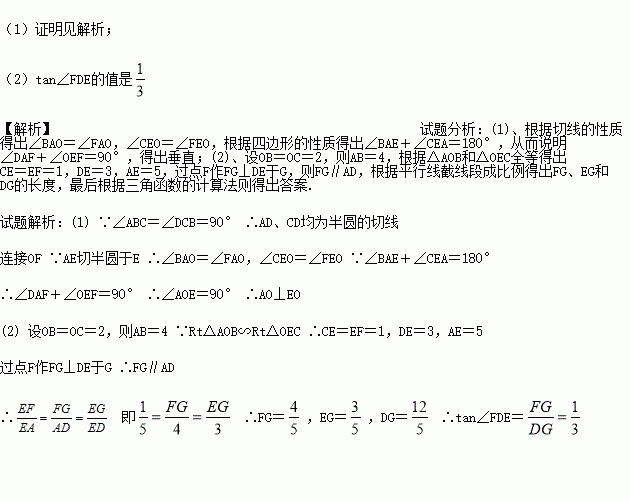(2) 连接DF,求tan∠FDE的值