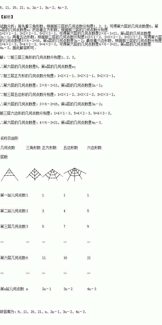 请写出第六层各个图形的几何点数,并归纳出第n层各个图形的几何点数.