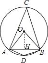 分析 作OH⊥AB于H,根据垂径定理得到AH=$\frac{\sqrt{3}}{2}$,根据正弦的概念得到∠AOH=60°,根据圆周角定理和圆内接四边形的性质得到答案.