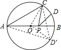 解答:解:作出D关于AB的对称点D′,连接OC,OD′,CD′.