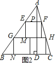 (2)BC=AD,如图2由已知条件得:EF∥GH∥BC,通过△GBN≌△EGM,得到EG=BG,根据△AEF∽△AGH,得到比例式$\frac{AE}{AG}=\frac{EF}{GH}=\frac{1}{2}$,证得AE=EG,于是得到AE=EG=GB,再由△AEF∽△ABC,得到比例式$\frac{AP}{AD}=\frac{EF}{BC}=\frac{AE}{AB}=\frac{1}{3}$,即可得到结论.
