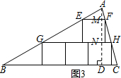 (3)如图3,过点A作AD⊥BC于D,分别交EF、GH于点M、N,设每个正方形的边长为a,根据EF∥GH∥BC,推出△AEF∽△AGH∽△ABC,于是得到$\frac{AM}{EF}=\frac{AN}{GH}=\frac{AD}{BC}$,列方程即可得到结论.