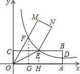 分析 (1)根据中点坐标公式得到E点坐标,再根据待定系数法得到双曲线解析式,把D点的横坐标代入可求D点的纵坐标,依此即可证明;