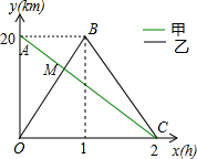 ∴甲乙相遇的时间为:20÷(10+20)=$\frac{2}{3}$小时.