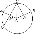 分析:根据圆心角、弧、弦之间关系求出∠AOC=∠BOC,根据角平分线性质得出CM=CN=4cm,根据垂径定理得出CD=2CM,代入求出即可.