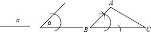 分析:首先根据作一个角等于已知角的方法作∠B=∠α,然后在用圆规在角的一边上截取AB=a,BC=2a,再连接AC即可.