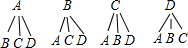 £¨4£©ÓÃA±íʾÀîÀÚB±íʾÍõ¸Õ£¬C¡¢D±íʾÆäËûÁ½ÃûÄÐͬѧ£¬¸ù¾ÝÌâÒâ»Ê÷״ͼÈçÏ£º![]()