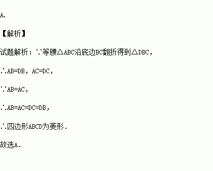 如图,△ABC为等腰三角形,如果把它沿底边BC翻折后,得到△DBC,那么四边形ABDC为( )