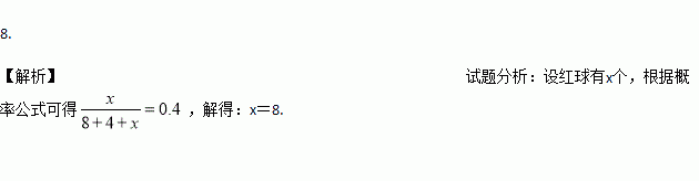 一个不透明的袋中装有除颜色外均相同的8个黑球、4个白球和若干个红球.每次摇匀后随机摸出一个球,记下颜色后再放回袋中,通过大量重复摸球试验后,发现摸到红球的频率稳定于0.4,由此可估计袋中约有红球________个.