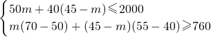 (2)设进A种水杯m个,则B种水杯为45-m个,根据A、B两种水杯的费用不超过2000元,全部售出后所得总利润不低于760元,可得出不等式组,解出即可.
