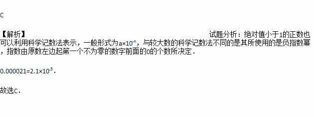已知一粒米的质量是0.000021千克,这个数字用科学记数法表示为( )