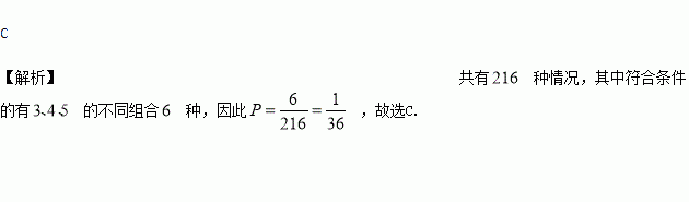 将三粒均匀的分别标有1,2,3,4,5,6的正六面体骰子同时掷出,出现的数字分别为a,b,c,则a,b,c正好是直角三角形三边长的概率是( )