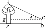 ①在测点D处安置测倾器,测得大树顶部的仰角∠ACE=α;