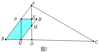如图2中,当$\frac{1}{2}$<x≤1,重叠部分是五边形PBQMN.![]()
