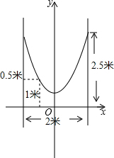 如图,小明的父亲在相距2米的两棵树间拴了一根绳子,给他做了个简易秋千,栓绳子的地方离地面都是2.5米,绳子自然下垂呈抛物线状,身高1米的小明距较近的那棵树0.5米时,头部刚好接触到绳子,则绳子最低点距离地面的距离为多少米?