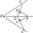 如图所示,BD是∠ABC的平分线,点P在射线BD上,PM⊥AD于M,PN⊥CD于N,PM=PN,求证:AB=CB.