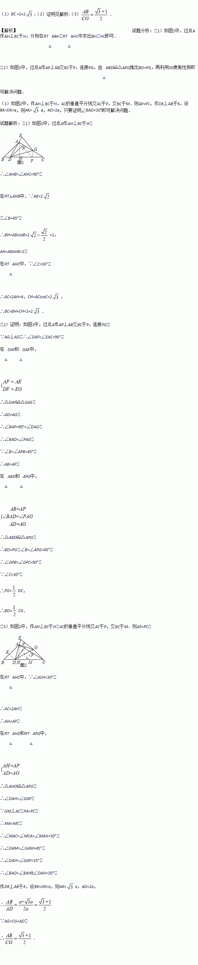 在△ABC中,∠B=45°,∠C=30°,点D是BC上一点,连接AD,过点A作AG⊥AD,在AG上取点F,连接DF.延长DA至E,使AE=AF,连接EG,DG,且GE=DF.
