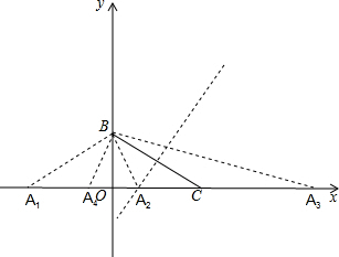 分析 由B(0,3),C(4,0),得到OB=3,OC=4,BC=$\sqrt{{OB}^{2}{+OC}^{2}}$=5,当AB=BC=5时,OA=OC=4,得到A1(-4,0),当AB=AC时,由勾股定理得到A2($\frac{7}{8}$,0),当AC=BC=5时,得到OA3=9,得到A3(9,0),