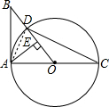 分析 连结AD,如图,先在Rt△ABE中利用勾股定理计算出BE=8,再根据切线的性质得OA⊥AB,接着证明Rt△BAE∽Rt△BOA,利用相似比可计算出OB=$\frac{25}{2}$,于是根据勾股定理,在Rt△ABO中计算出OA=$\frac{15}{2}$,在Rt△AOE中计算出OE=$\frac{9}{2}$,则DE=OD-OE=3,然后在Rt△ADE中可计算出AD=3$\sqrt{5}$,再利用AC为直径得到∠ADC=90°,最后在Rt△ADC中计算出CD.