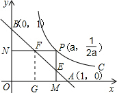 分析 设P的坐标为(a,$\frac{1}{2a}$),且PN⊥OB,PM⊥OA,那么N的坐标和M点的坐标都可以a表示,那么BN、NF、BN的长度也可以用a表示,接着F点、E点的也可以a表示,然后利用勾股定理可以分别用a表示AF,BE,最后即可求出AF•BE.