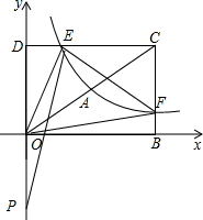 (3)先利用反比例函数k的几何意义得到S△OED=S△OBF=3,再计算出CE=$\frac{9}{2}$,FC=3,接着根据三角形面积公式计算出S△CEF=$\frac{27}{4}$,则利用面积的和差得到S△OEF=$\frac{45}{4}$,设P点坐标为(0,m),利用三角形面积公式得到$\frac{1}{2}$•|m|•$\frac{3}{2}$=$\frac{45}{4}$,解得m=±15,从而可得P点坐标.