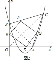 (3)如图2,利用两点间的距离公式分别计算出AB=4$\sqrt{2}$,OC=6$\sqrt{2}$,设D(t,0),根据平行四边形的性质四边形DEFG为平行四边形得到EF∥DG,EF=DG,再由OC垂直平分AB得到△OBC与△OAC关于OC对称,则可判断EF和DG为对应线段,所以四边形DEFG为矩形,DG∥OC,则DE∥AB,于是可判断△ODE∽△OAB,利用相似比得DE=$\sqrt{2}$t,接着证明△ADG∽△AOC,利用相似比得DG=$\frac{3\sqrt{2}}{2}$(4-t),所以矩形DEFG的面积=DE•DG=$\sqrt{2}$t•$\frac{3\sqrt{2}}{2}$(4-t)=-3t2+12t,然后根据二次函数的性质求平行四边形DEFG的面积的最大值,从而得到此时D点坐标.