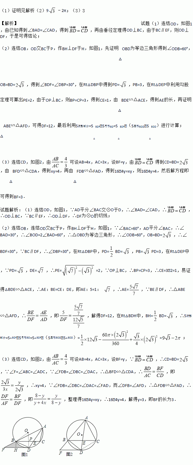 如图1,△ABC内接于⊙O,∠BAC的平分线交⊙O于点D,交BC于点E(BE>EC),且BD=2