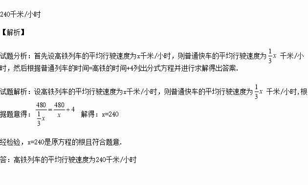 济南与北京两地相距480km,乘坐高铁列车比乘坐普通快车能提前4h到达,已知高铁列车的平均行驶速度是普通快车的3倍,求高铁列车的平均行驶速度.