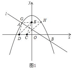 (2)过点E作x轴的平行线交抛物线G、H两点,如图1,![]()