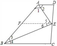 分析 过E点作EF∥BC,根据梯形中位线定理,可得EF∥AD∥BC,AF=BF,根据平行线的性质得到∠2=∠5,再根据等式的性质和等角对等边得到AF=EF,根据等量关系得到BF=EF,根据等边对等角得到∠3=∠6,再根据平行线的性质得到∠4=∠6,再根据等量关系即可求解.