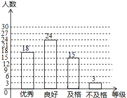 分析 (1)根据统计图可知优秀的18人占30%,从而可以得到本次抽查的学生数;