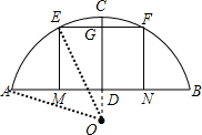(2)连接OE,首先求得OD,假设EF=8m,由垂径定理得出EG=4m,利用勾股定理求得OG,进一步求得DG,与高度5m比较得出答案即可.