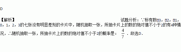 从分别标有数﹣3,﹣2,﹣1,0,1,2,3的七张没有明显差别的卡片中,随机抽取一张,所抽卡片上的数的绝对值不是正数的概率是( )