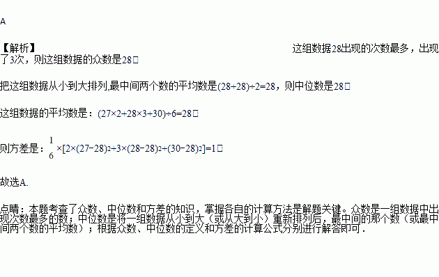 在2017年体育中考中,某班一学习小组6名学生的体育成绩如下表,则这组学生的体育成绩的众数,中位数,方差依次为( )