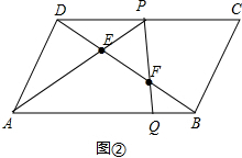 (2)根据平行四边形的性质得DC∥AB,则可判断△DPE∽△BAE,利用相似比可得AB=2DP,同理可得BQ=$\frac{1}{2}$DP,则AB=4BQ,所以AQ=3BQ.