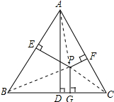 分析:连接PA、PB、PC,根据△ABP、△BCP、△ACP的面积和等于△ABC的面积,由等边三角形的三边相等,即可得出结论.