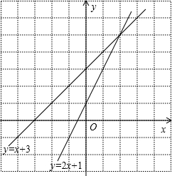 分析 在同一平面直角坐标系中画出函数y=x+3与y=2x+1的图象,两直线交点的坐标就是方程组$\left\{\begin{array}{l}{y=x+3}\\{y=2x+1}\end{array}\right.$的解.
