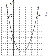 解答 解:画出函数y=x2-3x-4的图象如图所示,它与x轴的交点坐标分别是(-1,0),(4,0),所以方程x2-3x-4=0的实数根为x1=-1,x2=4.